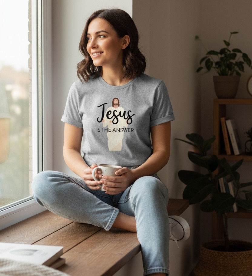 Make a bold statement of faith with this ‘Jesus is the Answer’ tee. Featuring a striking vector illustration of Jesus behind the text, this shirt blends modern design with timeless truth. Soft, comfortable, and perfect for everyday wear, it’s a reminder that no matter what life throws your way, the answer is always Him.